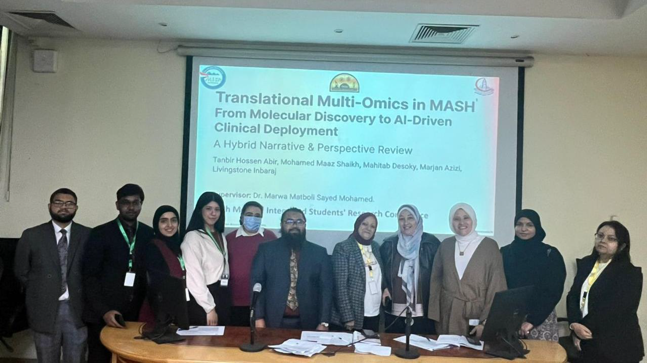 The students in the 9th Medical Integrated Students’ Research Conference: Tanbir Hossen Abir, Mohamed Maaz Shaikh, Mahitab Desoky, Marjan Azizi
